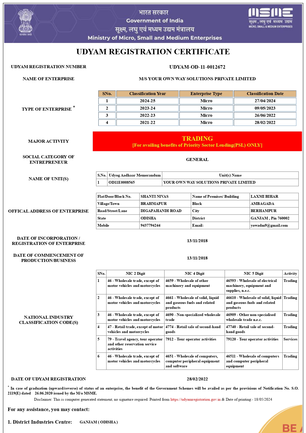 At Your Own Way Solution Pvt Ltd, we are committed to fostering the growth and development of Micro, Small, and Medium Enterprises (MSMEs). Our comprehensive range of support services is designed to empower businesses from the ground up, providing the tools and resources necessary to thrive in today's competitive market.